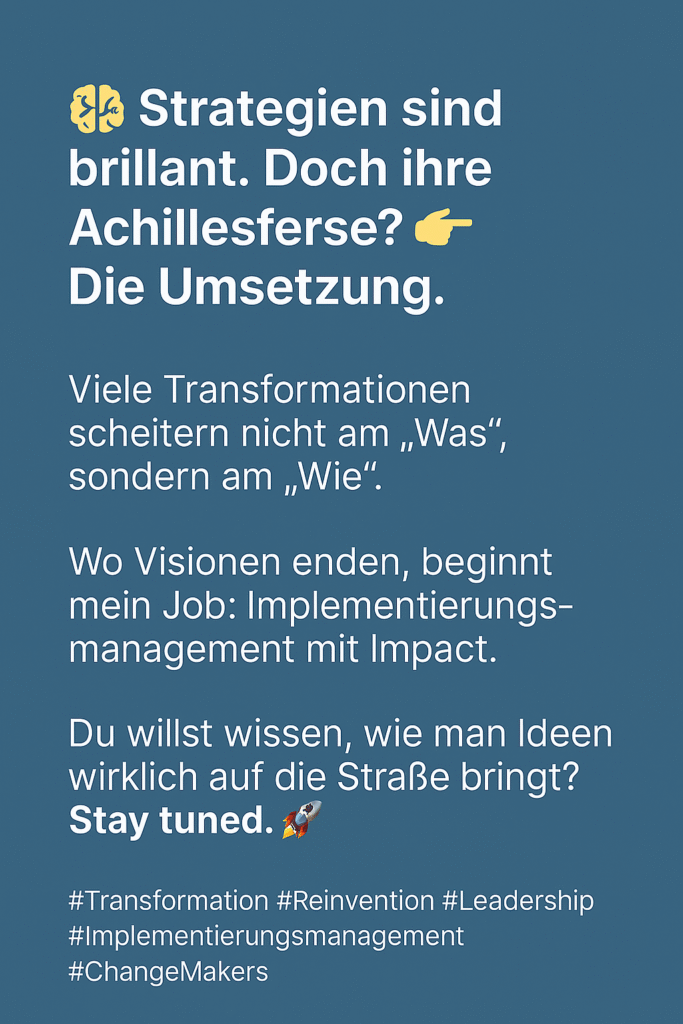 Veränderung ist die einzige Konstante. Reinvention ist eine Entscheidung. Wenn Sie bereit sind, nicht mehr nur zu reagieren, sondern aktiv zu führen – gestalten wir gemeinsam die Zukunft Ihres Unternehmens. [Jetzt Kontakt aufnehmen] Buchen Sie Ihr kostenloses Kennenlerngespräch – und entdecken Sie, was möglich ist, wenn Strategie auf Umsetzung trifft.